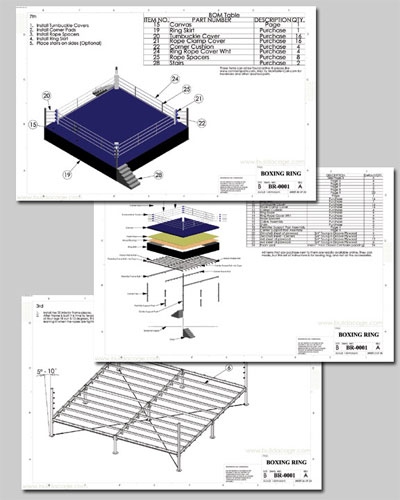 Our Professional drafted boxing ring blueprints are the same plans used by professional builders and trainers. These easy to use plans are great for any level of experience and will show you how to build a boxing ring Download now and get the plans delivered instantly in PDF format so you can print at home! We also have other boxing and MMA products like our Build A Speed Bag plans!