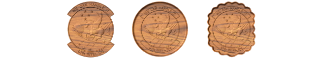 97th Intelligence Squadron Crest in all three styles. Style a is the plain 3d emblem, style b is the emblem in a standard dish, and style c is the emblem in a sculpted dish.