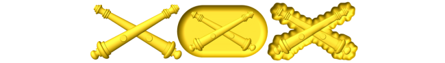 Artillery Branch Insignia in all three styles. Style a is the plain 3d emblem, style b is the emblem in a standard dish, and style c is the emblem in a sculpted dish.