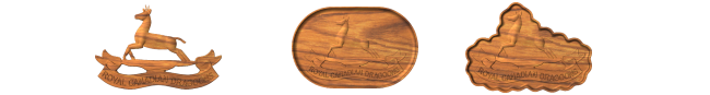 Royal Canadian Dragoons Enlisted Cap Badge in all three styles. Style a is the plain 3d emblem, style b is the emblem in a standard dish, and style c is the emblem in a sculpted dish.