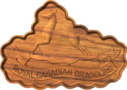 Royal Canadian Dragoons Enlisted Cap Badge in a sculpted dish.