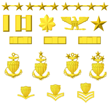 US Coast Guard Rank insignia from Petty Officer 3rd Class to Admiral
