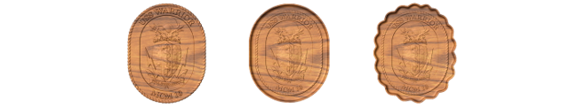 USS Warrior Crest in all three styles. Style a is the plain 3d emblem, style b is the emblem in a standard dish, and style c is the emblem in a sculpted dish.