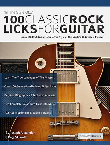 100 Classic Rock Licks for Guitar goes way beyond every other ‘boring’ lick book, and teaches you 100 essential rock guitar licks in the style of the world’s 20 greatest rock guitarists….