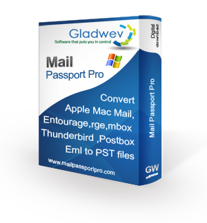 Mail Passport Pro - Easy to use Wizard based step by step process , Fast and Reliable Email Conversion tool if you are moving emails from Apple Mail / Mac Mail database or Mail box , Microsoft Entourage Archive (.rge) , Thunderbird/Postbox Email Database , Eml files, Mbox files to Outlook for Windows (.pst file format) Another fine release by Gladwev Software the pioneers in cost effective and reliable Email Migration solutions. System Requirements Supported Operating System Microsoft® Windows 7 / Vista / XP / 2003 / 2000 Supported Microsoft® Outlook Versions Microsoft® Outlook 2003 / 2007 / 2010. Prerequisites Microsoft® Outlook 2003 / 2007 / 2010 should be installed on the system. Microsoft®.NET Framework 3.0 or higher must be installed on your system.
