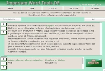 Imperium Word Tools DE bietet ein Wörterbuch, das Wörter und ihre Wörterbucheintrage in einer konventionellen Weise präsentiert. An diesem Punkt können die Nutzer zu einer zweiten Ebene gelangen, in der jedes Wort in seinem unmittelbaren System gezeigt wird. Im Falle von unflektierten Wörtern, ist dies auf ein Minimum beschränkt, aber bei den Substantiven, Adjektiven und Verben, wird das ganze System gezeigt.