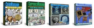 Latest Editions of CoinManage Deluxe, StampManage Deluxe, CurrencyManage Deluxe and HomeManage..shipped to you on USBs.