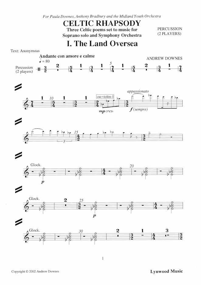 andrewdownes.com Celtic Rhapsody for Soprano Solo and Symphony Orchestra: Percussion