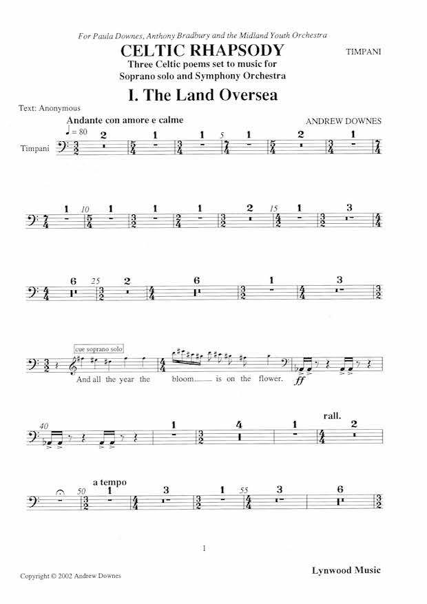 andrewdownes.com Celtic Rhapsody for Soprano Solo and Symphony Orchestra: Timpani