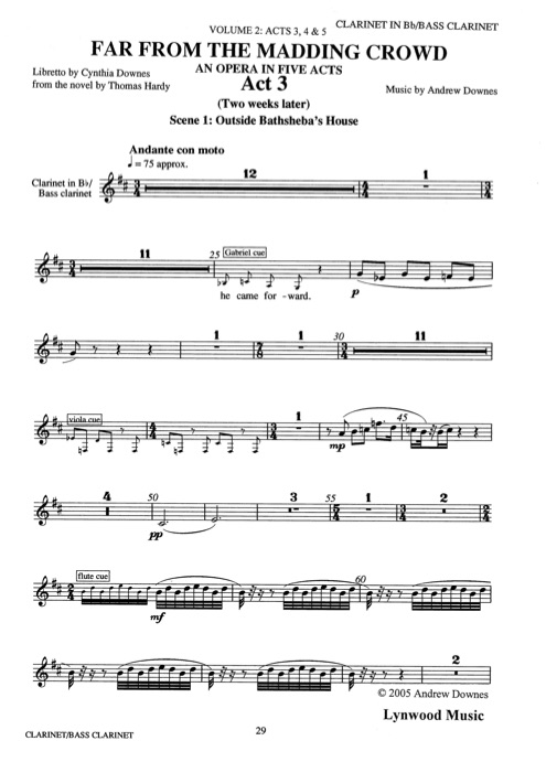 andrewdownes.com Opera: Far from the Madding Crowd: Bb Clarinet/Bass Clarinet, Vol.2 (Acts 3, 4 & 5)