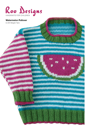 Knitting pattern for a child's crew-neck sweater with Watermelon motif.