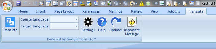 This add-in for Microsoft® Word® adds a new tab on the top of your MS Word application. Using this easy to use interface you can simply select a text and it will translate the text for you.