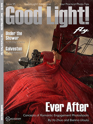 Good Light! Magazine Issue 95 - Inspiration for engagement photoshoots. Tips for glamour photoshoots in small spaces. Ideas for period concept photoshoots.